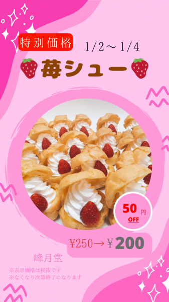 \苺のシュークリーム、3日間だけの特別プライス/